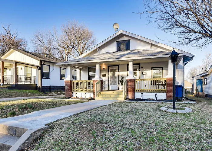 Offering a location about a 25-minute walk from the open-air Guthrie Green, the 1-bedroom 1 Mi To Tulsa Arts District Updated Home With Deck! gives access to various tourist spots in the area.